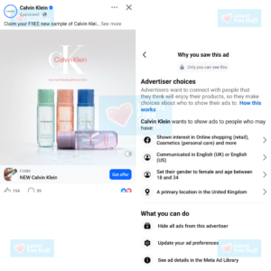 👀 Hey all! Look out for the free Calvin Klein Body Mist ads doing the rounds on Facebook. This is a great way to show Facebook that you like free perfumes too. Read the image below to se who they’re looking for to see this advert.