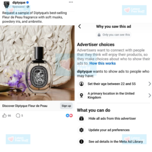 If the sponsored advert doesn’t appear in your feed after following and engaging with Diptyque Facebook page, consider the following actions: