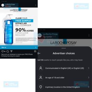 👀 Hey all! Look out for the free La Roche-Posay cleanser sample ads doing the rounds on Instagram. This is a great way to show Instagram that you like free skincare, too. Read the image below to see who they’re looking for to see this advert.