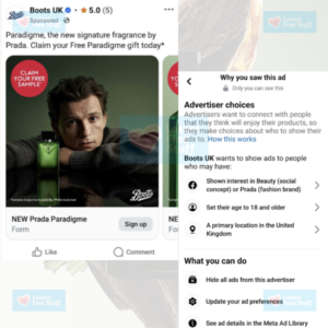 👀 Hey all! Look out for the free Prada sample ads doing the rounds on Facebook. This is a great way to show Facebook that you like free fragrances too. Read the image below to see who they’re looking for to see this advert.