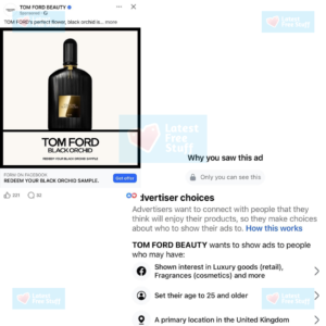 👀 Hey all! Look out for the free Tom Ford perfume ads doing the rounds on Facebook. This is a great way to show Facebook that you like free perfumes too. Read the image below to see who they’re looking for to see this advert.