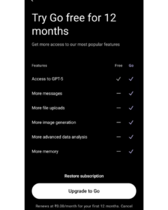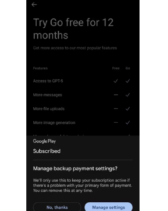 Subscribe to ChatGPT Go: